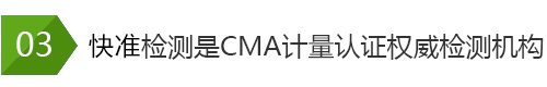 中國計量認證簡稱“CMA”,只有取得CMA認證證書的檢測機構(gòu),才能夠 從事檢測檢驗工作,對外出具檢測報告,并允許其在檢驗報告上使用CMA 標記。有CMA標記的檢驗報告可用于環(huán)境及產(chǎn)品的質(zhì)量評價、成果及司法 鑒定